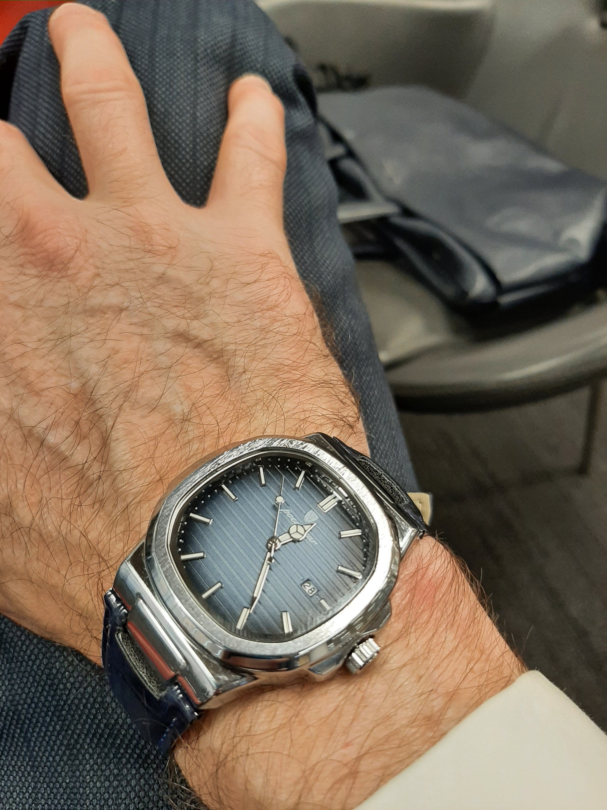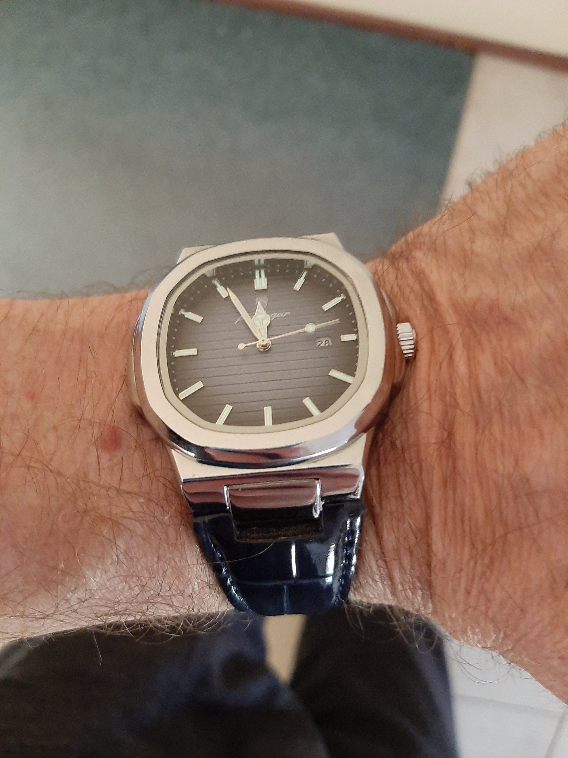 Tremendous Grazed Metal finish on the Dial with a Grain look