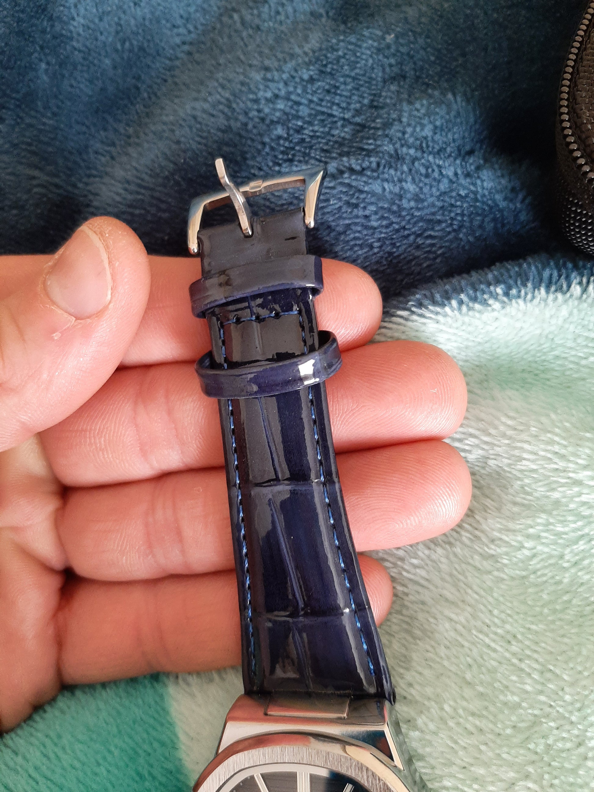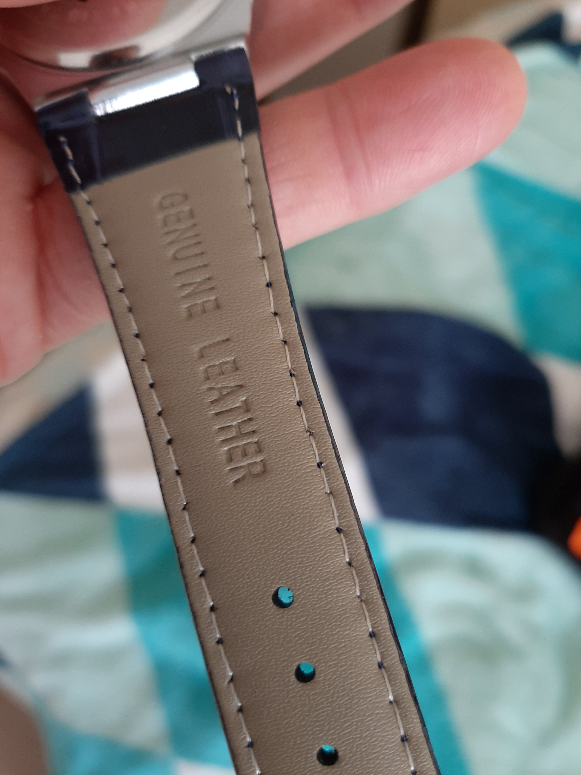 Genuine Leather Band in Navy Blue with Blue Stitching