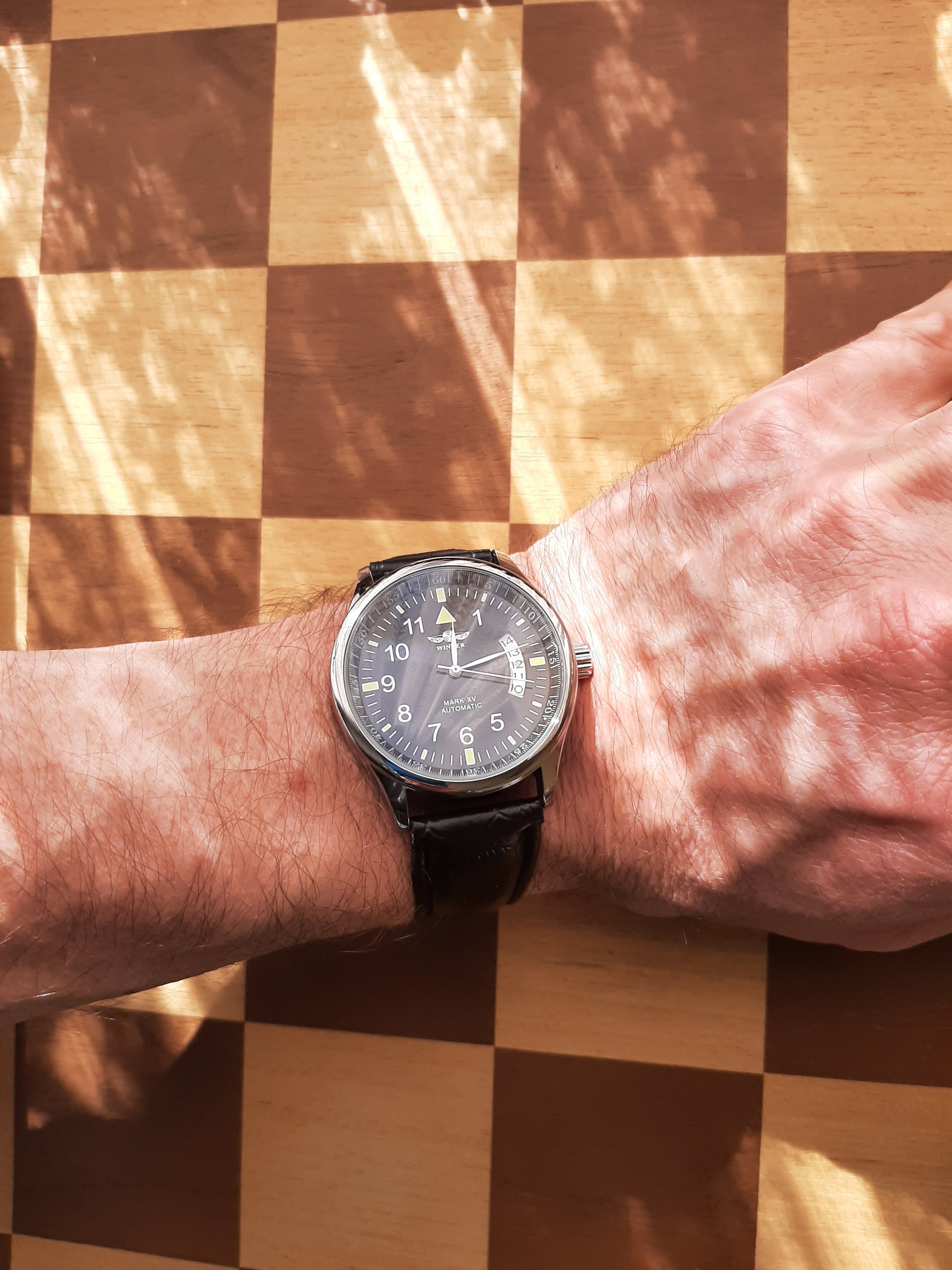 Scandinavian Yellow Arrows on a thick Stainless Steel [round] dial