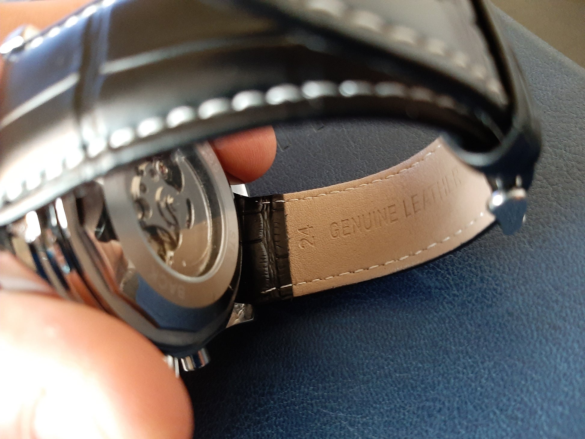 Genuine Leather Band [Black] with White Stitching