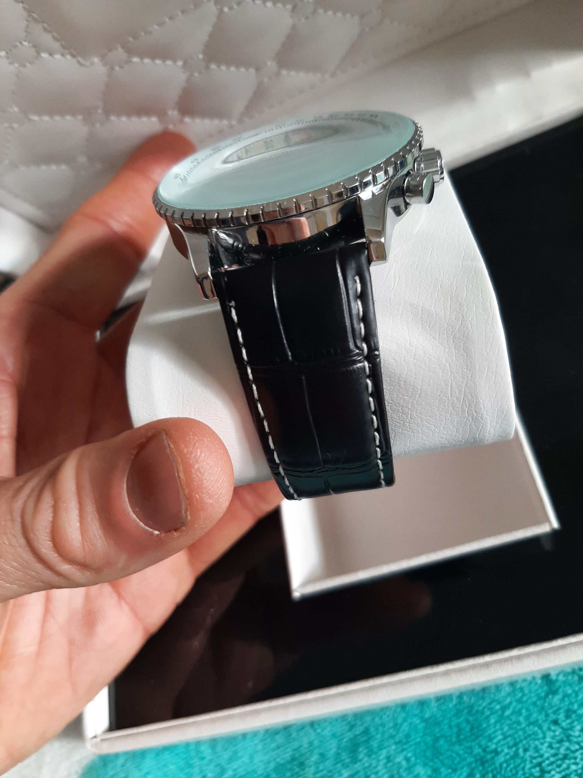 Fresh-cut metal Grain finish on the watch bordering